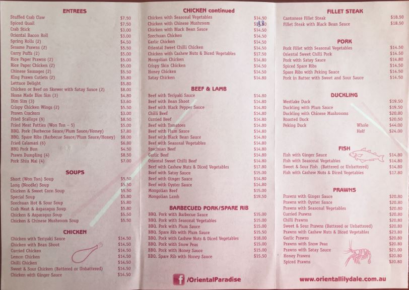 Welcome to Oriental Paradise Chinese Restaurant, a beloved gem situated in Lilydale, Victoria. This venue offers a vibrant menu that captures the essence of traditional Chinese cuisine. Highlights include an array of gluten-free fried rice options such as Chicken and Prawns Fried Rice, skillfully prepared to satisfy all palates.